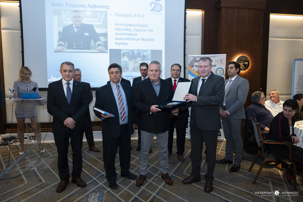 · Καπτ. Γεώργιο Αρβανίτη, από τον Γενικό Γραμματέα της ΠΝΟ καπτ. Μανώλη Τσικαλάκη και τον Πρόεδρο της ΠΕΠΕΝ καπτ. Παναγιώτη Γιγή.